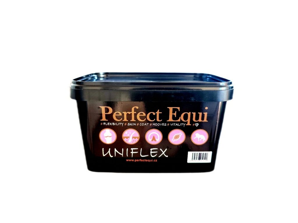 Perfect Equi UNIFLEX - kolagenní peptidy společně s kyselinou hyaluronovou, biotinem a dalšími obsaženými vitamíny a stopovými prvky tvoří elixír pro pružnost a pevnost tkání celého těla. Je vhodný pro všechny kategorie koní, včetně koní mladých a rostoucích a mohou ho bezpečně užívat i březí a laktující klisny.